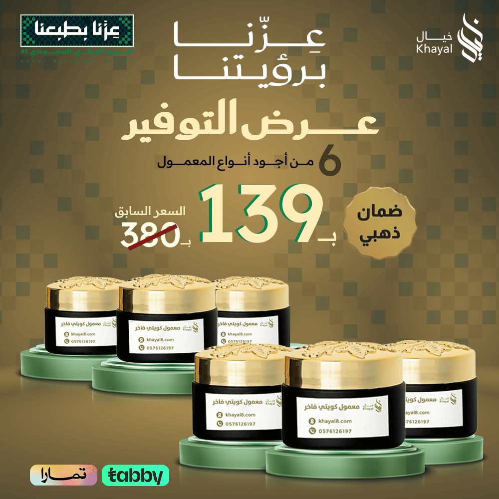 - عدد 6 معمول كويتي (360 جرام): عبق الزهور البيضاء والباتشولي والزعفران مع العود